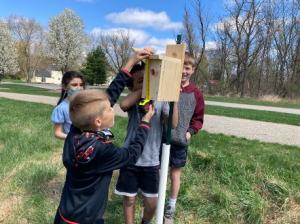 Sixth grade students also met with Mr. Sportel during their science class to start a project on decomposition. Students buried cotton underwear in different locations around school to see which areas and types of soil will have the best microorganisms to break down the underwear.