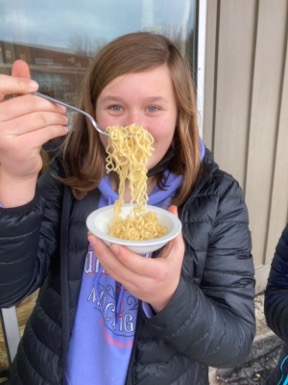 In seventh grade we’ve been focusing on fire and combustion, so we finished that up in January. We built small alcohol burning stoves with pop cans and tested them out by cooking Ramen. We then compared it with an improvised cooker made from a soup can and a burner made from wax and cardboard in a tuna can.