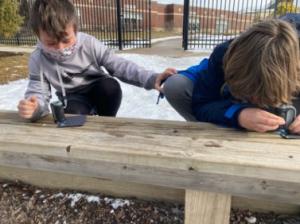 In third grade we had a couple of main focuses. First, we learned about Native Americans and worked on dugout canoes as well as played some Native American games. We even used fire to help burn out the canoes. We also spent some time on snow and snowflakes. Students made crystals using pipe cleaners and a concentrated borax solution. They also used pocket microscopes to take a look at snowflake patterns and crystals. We also took a day to study animals tracks, and scat. The third grade flowers are starting to bloom in the greenhouse.