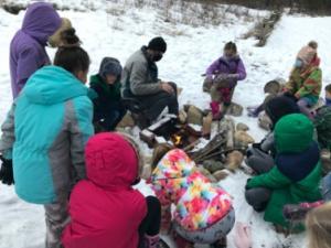The main topic in second was the three states of matter. We reviewed the three states by melting and boiling snow over a small fire and acting out the molecules. We then used melted wax to make firestarters in egg cartons. We tested one of the firestarters and as it burnt discussed the differences between change of state (reversible change) and burning (irreversible change) To finish we took our knowledge of the three states to make suncatchers by freezing pieces of nature into ice.