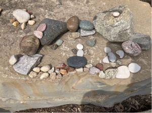 2nd - In second grade the main focus was on direction and maps. Students searched for a treasure by using a compass and following directions. Later they used a map to play hide and seek with a partner. One person hid a rock and marked it on the map for their partner to find. Lastly, students used maps to work in small groups to find letters hidden around school to solve a clue. Right before spring break we introduced the rocks and took time to make art using only rocks as students made pictures from the resurrection story.