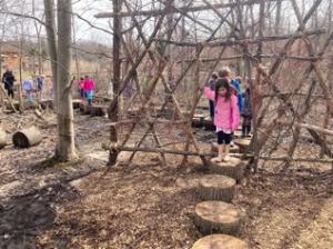 Kindergarten - Kindergarten really enjoyed the early spring. They spent time looking for signs of spring by searching for critters under logs and rocks as well as a search around school for all sorts of signs of spring. They also explored their science topics. They investigated movement by rolling balls down the hill and experimented with materials in nature by creating small structures out of materials in the woods.
