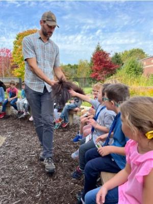 Fifth graders are finally getting into the process of the goat chores. Many students have begun taking turns in the barn to care for our beloved goats. This month they also made landform maps of the school property to observe how glacial melt carved out our state's landforms.