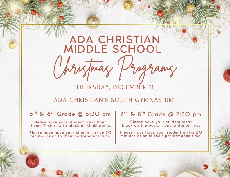 Please join our middle school to celebrate Christmas with our ACS Middle School Family. For those not able to join us in person, we will be streaming these concerts below.